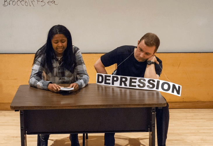 We devised our Living Newspaper scripts using interviews, story circles, and independent research. Devising is a method of collective creation in which the script originates from the collaborative efforts of a performing ensemble. Improvisation was key to our process.